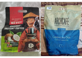 左邊是”MR. VIET越南先生”、右邊是”ARCHCAFE”,都是買椰子口味的,因為那天被共咖啡(Cong Caphe)的椰子咖啡驚艷到。相較之下,右邊的椰子更香濃,且甜度較低,比較喜歡右邊,但Wuya在超市比較容易看到左邊款,這包是在峴港機場等飛機時買的。