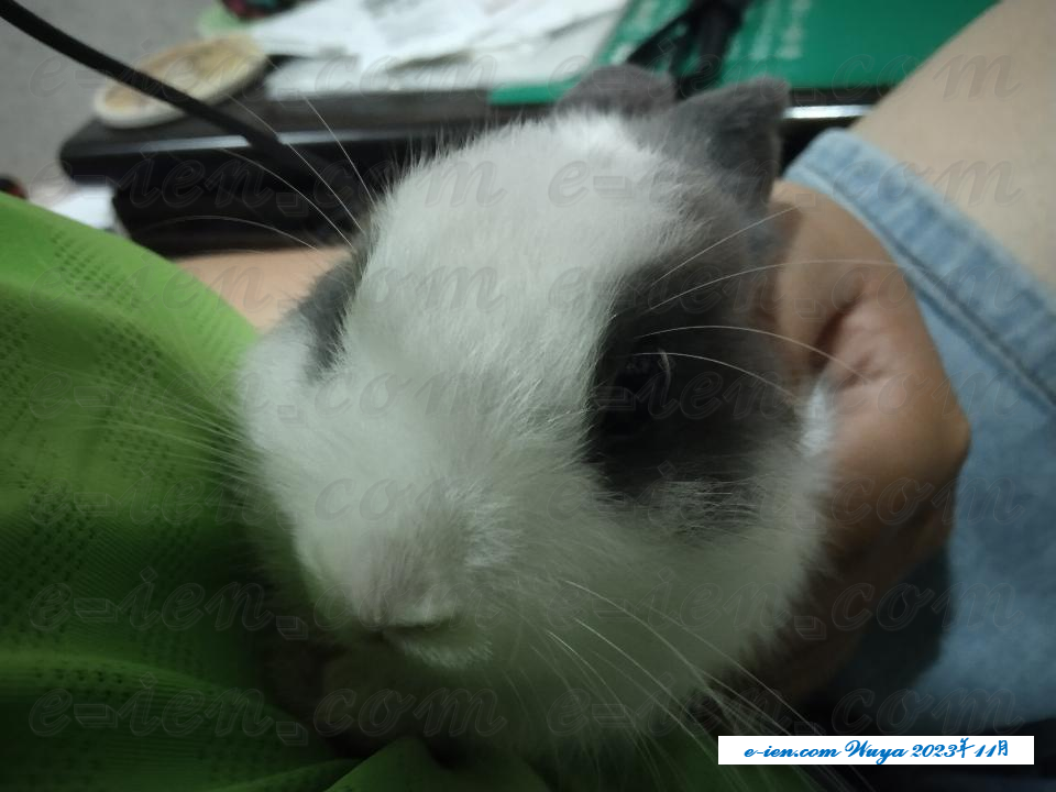 我是一隻白色的兔寶,雙眼到耳朵是黑灰色的,並且穿著黑灰色的褲褲,有著灰黑色的眼球。(是不是很繞口?(❁´◡`❁)*✲゚*)現齡估計1.5歲(2025年),Wuya估的,我也不是很清楚,總之我很年輕,也很健康。