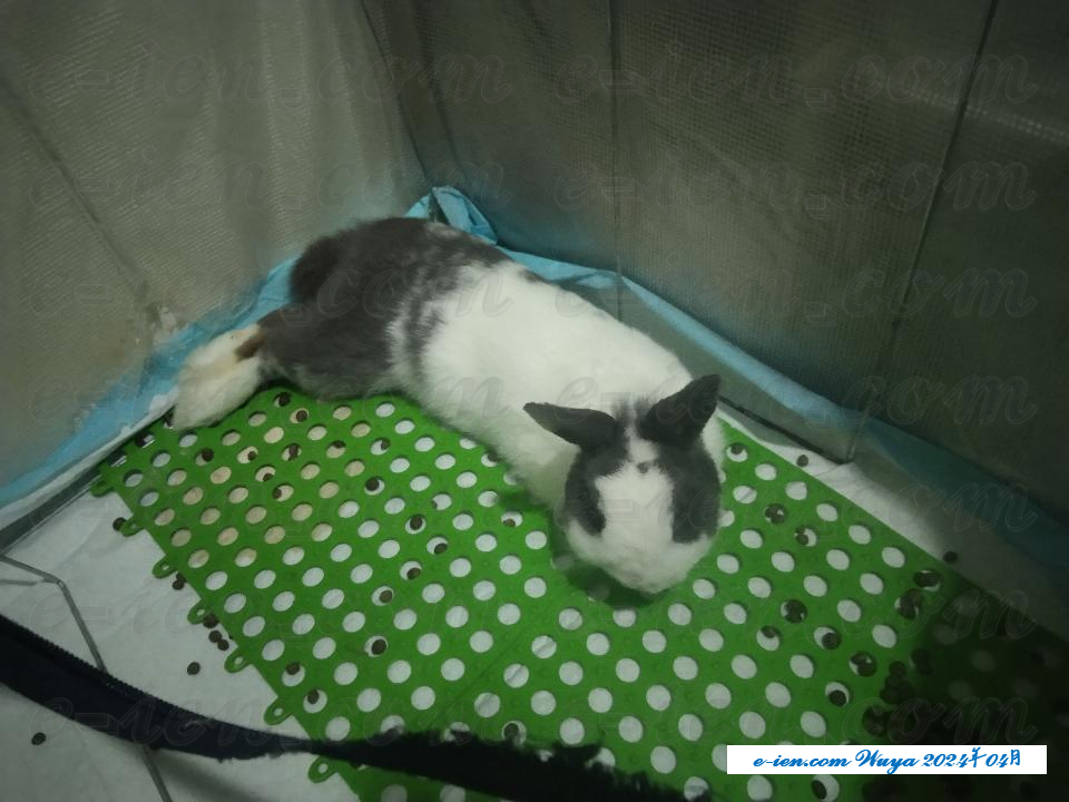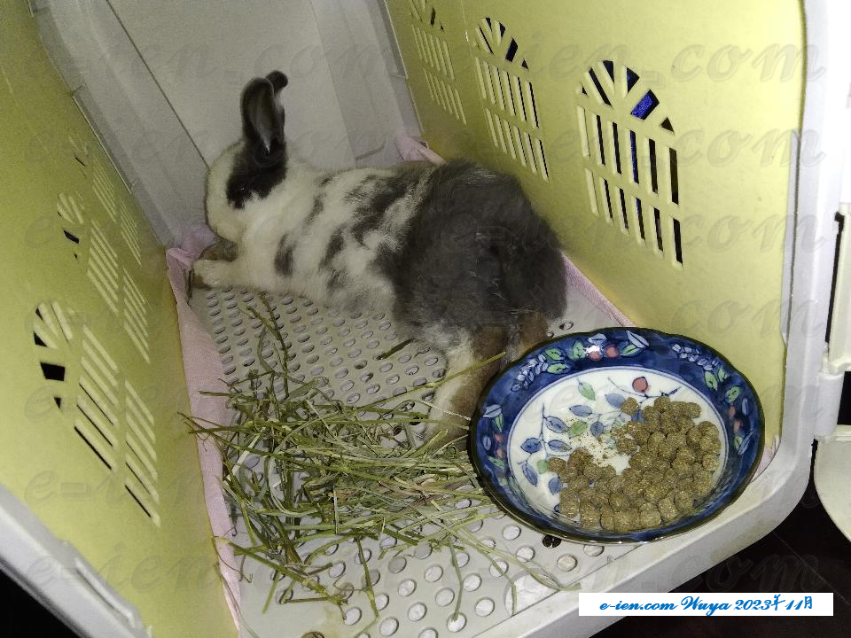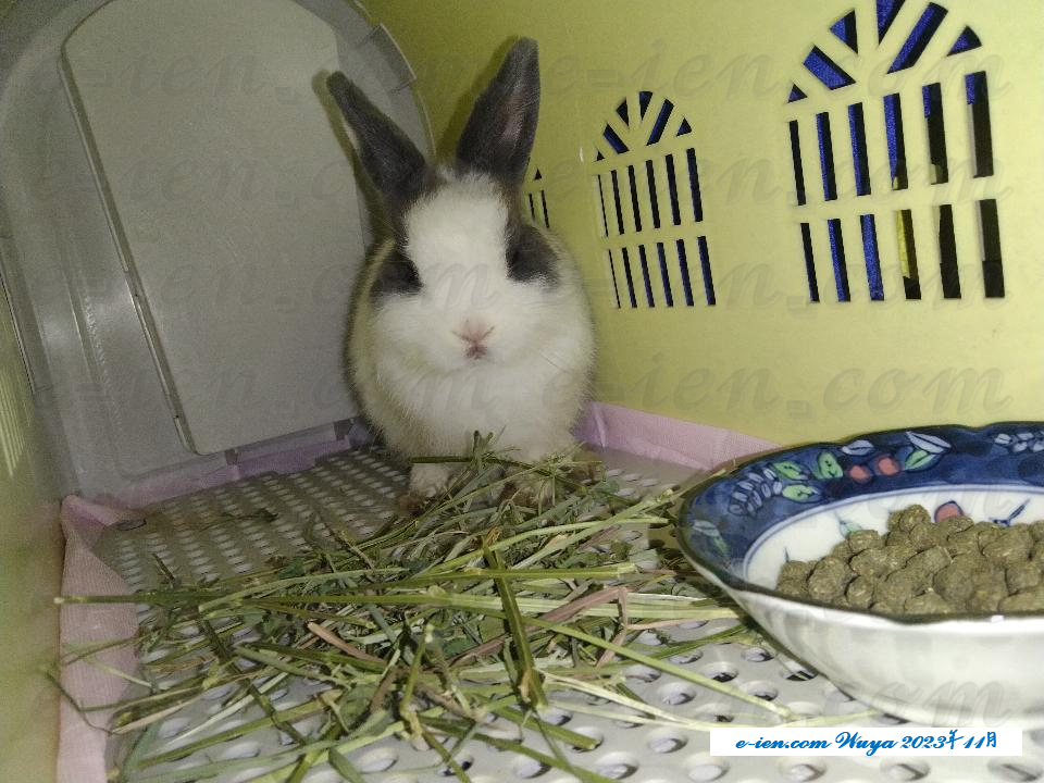 我目前也是以吃提摩西二割為主,跟隔壁棚一樣,每天請幫我補充2次牧草,我也不吃不新鮮的,大概也是放一把跟我體型差不多的量在旁邊就行,別放太滿,不然我沒空間了,放置的同時也請幫我壓一下牧草,免得我轉頭就戳到眼睛。我們兔寶眼睛不像人類看起來是3D的,所以沒辦法精準判斷距離,謝謝妳體諒我們喔~