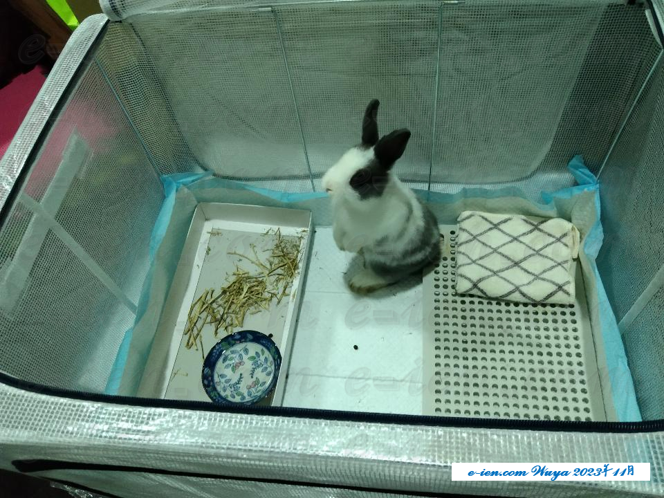 Wuya不在的時候會把我關在這樣小小的籠子裡,挺堅固的,等她回來後才會放我出來跑跑。幸好我也長得不大,就比隔壁棚大一丟丟。