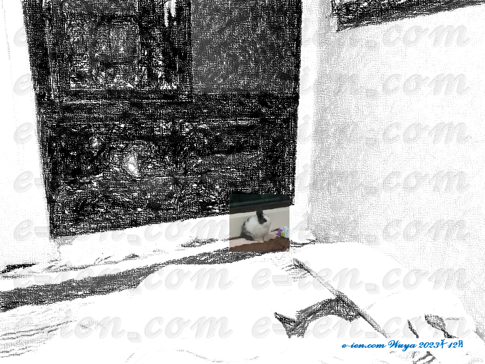 那天Wuya騎著她的逋逋車停在了我所掉落的排溝上方,對著我說,如果妳願意跟我回家,妳在那邊等等我,等我請人把妳帶上來。我就在下面待著跟Wuya對看並等待著。不久後來了幾名大漢跳下來,嚇死我了,我跑了一小段被包圍,最後被裝在袋子裡帶了上來,並跟Wuya回家了。